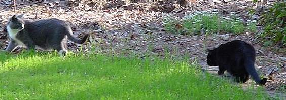 ![]() I live with two cats. Little Gray is the smaller gray cat and Tiger is the big black cat.