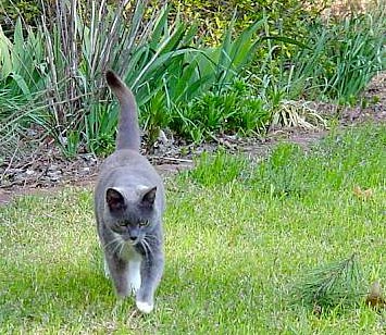They walk around the brick "cat walk" in the yard.